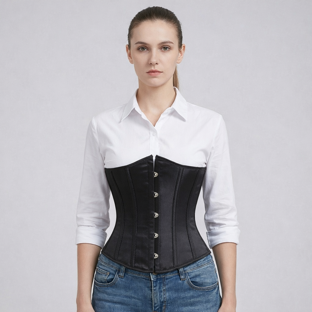 Modelo abaixo dos seios, pode ser usado com as seguintes peças por baixo: t-shirt, camisa, blusas de diversos estilos, vestidos em qualquer estação e no inverno acrescentar nestas composições uma jaqueta, blazer, casaco, cardigan... Por ser uma peça versátil também pode ser usado como lingerie. Corselet underbust acetinado: perfeito para diversas ocasiões!